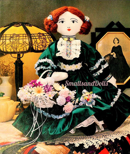 Vintage Sewing Pattern 27" Pretty Victorian Girl Soft Sculpture Toy Doll PDF Instant Digital Download Lacy Ribbons Satin Dress
