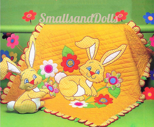 Vintage Sewing Pattern Gingham Bunny Baby Quilt and Matching Bunny Rabbit Soft Toy PDF Instant Digital Download Applique Crib Quilt Blanket