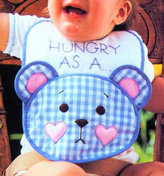 Vintage Sewing Pattern Gingham Teddy Bear Bib PDF Instant Digital Download Applique Hungry As A Bear Bib