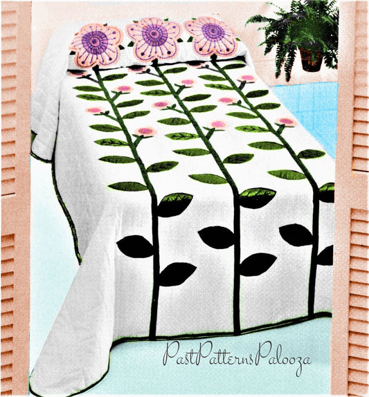 Vintage Sewing Pattern Triple Fairytale Flowers Bed Quilt PDF Instant Digital Download Retro Applique Three Giant Flowers Quilted Bedspread