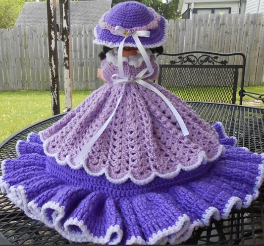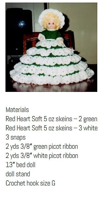 Vintage Crochet Pattern 13" Pretty Bed Doll Ruffled Tiered Dress and Hat PDF Instant Digital Download 10 Ply