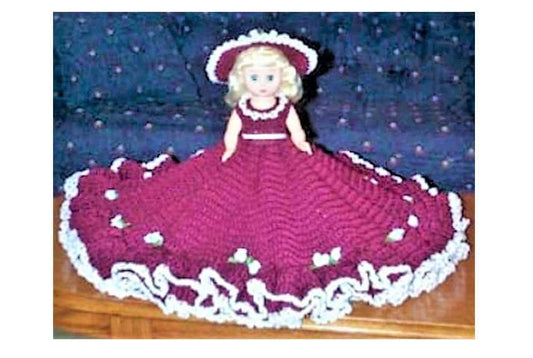 Vintage Crochet Pattern 13" Pretty Bed Doll Roses & Ruffles Dress Hat Outfit PDF Instant Digital Download 10 Ply