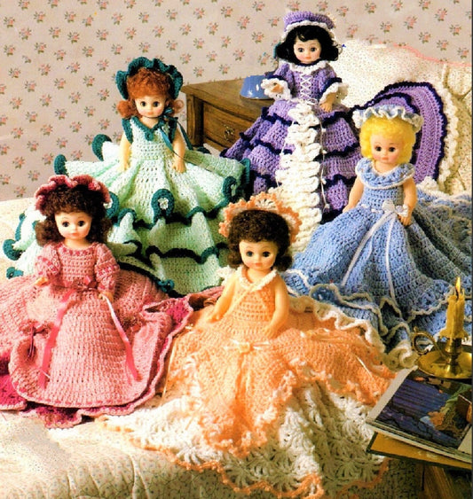 Vintage Crochet Pattern 13" Pretty Bed Dolls Southern Belles PDF Instant Digital Download 5 Beautiful Designs 10 Ply