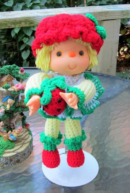 Vintage Crochet Pattern 14" Cupcake Corner Strawberry Jam Yarn Head Doll PDF Instant Digital Download 1980s Dumplin Designs 4 Ply Mitzy