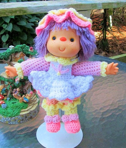 Vintage Crochet Pattern 14" Cupcake Corner Rainbow Slush Yarn Head Doll PDF Instant Digital Download 1980s Dumplin Designs 4 Ply Mitzy