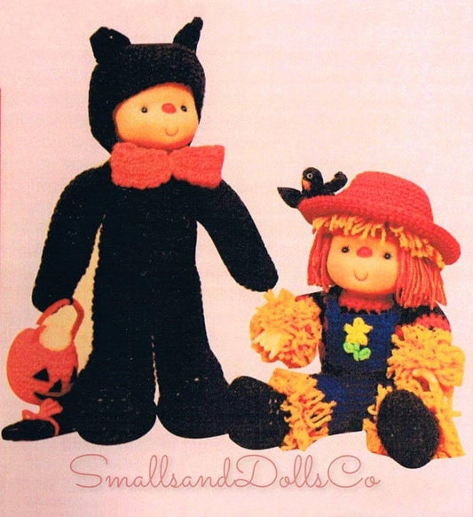 Vintage Crochet Pattern 14" Halloween Scarecrow Black Cat Yarn Head Dolls PDF Instant Digital Download Retro 1980s 10 Ply