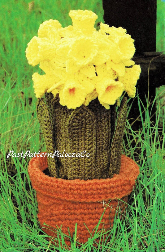 Vintage Crochet Pattern 14" Daffodil Flowers Pot Potted Plant PDF Instant Digital Download Realistic Springtime Perennial 4 Ply