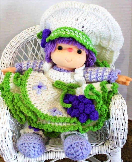 Vintage Crochet Pattern 14" Lollipop Lane Grape Jelly Yarn Head Doll PDF Instant Digital Download Retro 1980s Dumplin Designs 4 Ply Mitzy