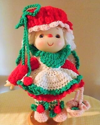 Vintage Crochet Pattern 14" Lollipop Lane Cherries Jubilee Yarn Head Doll PDF Instant Digital Download Retro 1980s Dumplin Designs 4 Ply