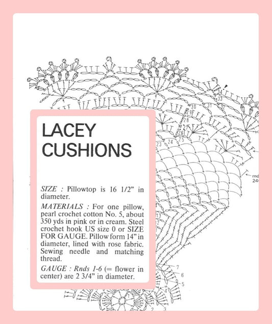 Vintage Crochet Pattern 14" Round Lacy Cushion Covers PDF Instant Digital Download Decorative Throw Pillow Top Flower Topper Cotton Thread