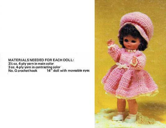 Vintage Crochet Pattern 14" Three Sisters Doll Clothes Pretty Old Fashioned Outfits PDF Instant Digital Download 4 Ply