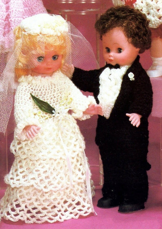 Vintage Crochet Pattern 14" Wedding Party Doll Clothes PDF Instant Digital Download Bride Groom Outfits Bridesmaids Dresses 4 Ply