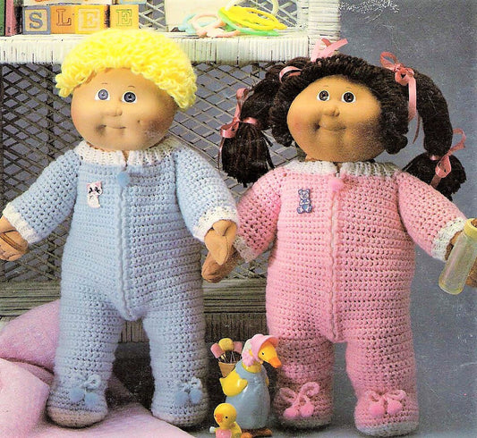 Vintage Crochet Pattern 16 Inch Soft Sculpture Cabbage Patch Kids Doll Sleepwear Clothes Pajamas PDF Instant Digital Download 10 Ply