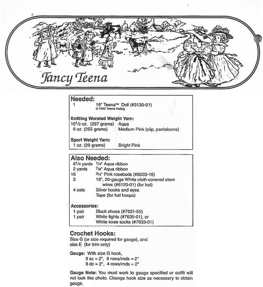 Vintage Crochet Pattern 16" Fancy Old Fashioned Doll Outfit PDF Instant Digital Download Ruffled Dress Large Brim Hat 10 Ply