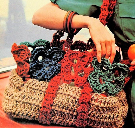 Vintage Crochet Pattern 16" Boho Rosette Flower Basket Shoulder Bag Purse PDF Instant Digital Download Retro Jute Twine Handbag