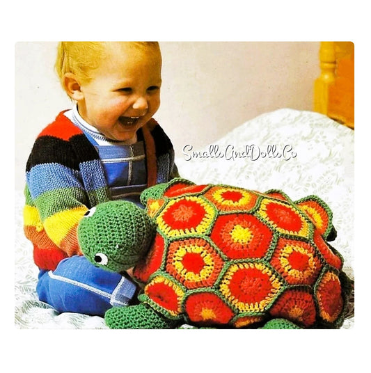Vintage Crochet Pattern 16" Granny Square Turtle Soft Toy Doll Amigurumi Tommy Tortoise Hexagon Motifs PDF Instant Digital Download 10 Ply