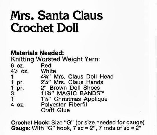 Vintage Crochet Pattern 16" Mrs Santa Claus Doll PDF Instant Digital Download Dress Bonnet Apron 10 Ply