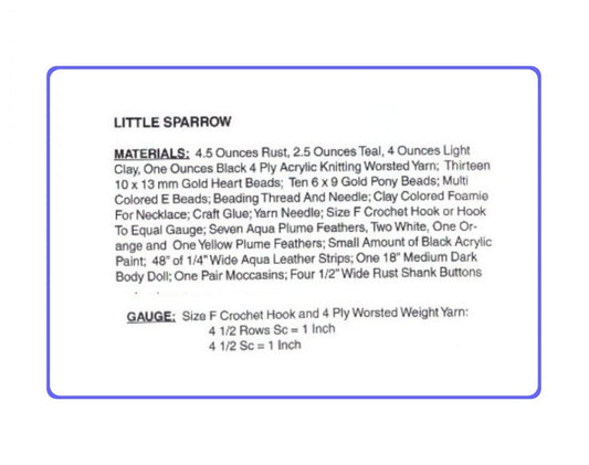 Vintage Crochet Pattern 18" Little Sparrow Indian Girl Doll PDF Instant Digital Download Native American Outfit For Eighteen Inch Dolls