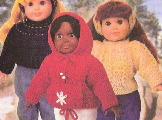 Vintage Crochet Pattern 18 Inch Dolls Knit Sweaters Hoodie Headbands Sets PDF Instant Digital Download Ribbed Cable Hooded Sweaters 4 Ply