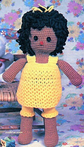 Vintage Crochet Pattern 18" Little Girl Amigurumi Soft Doll Curly Black Hair PDF Instant Download Plush Pretty African American Girl 10 Ply
