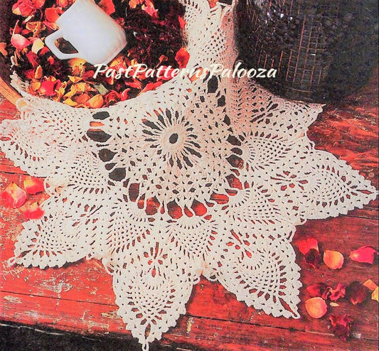 Vintage Crochet Pattern 19" Lacy Spring Easter Flower Baskets Table Centerpiece PDF Instant Digital Download Large Floral Doily Table Mat