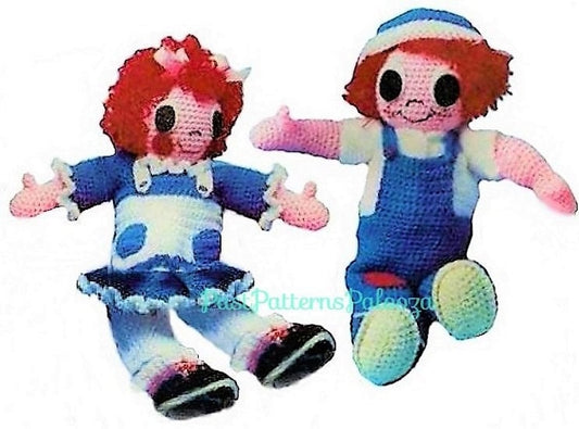 Vintage Crochet Pattern 20" Classic Raggedy Ann & Andy Rag Dolls PDF Instant Digital Download Cute Amigurumi Soft Toy Dolls 10 Ply