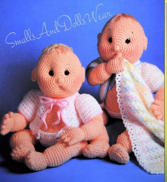 Vintage Crochet Pattern 20" Boy Girl Twins Baby Dolls and Clothing Soft Sculpture Amigurumi PDF Instant Digital Download Complete Layettes