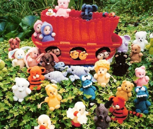 Vintage Crochet Pattern 4" Noahs Ark Amigurumi Mini Animal Beanies Soft Toys PDF Instant Digital Download 28 Animal Designs + Ark Storage
