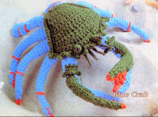 Vintage Crochet Pattern 4" Blue Crab Soft Toy Amigurumi PDF Instant Digital Download Crustacean Realistic Plush Stuffed Sea Life Doll 4 Ply