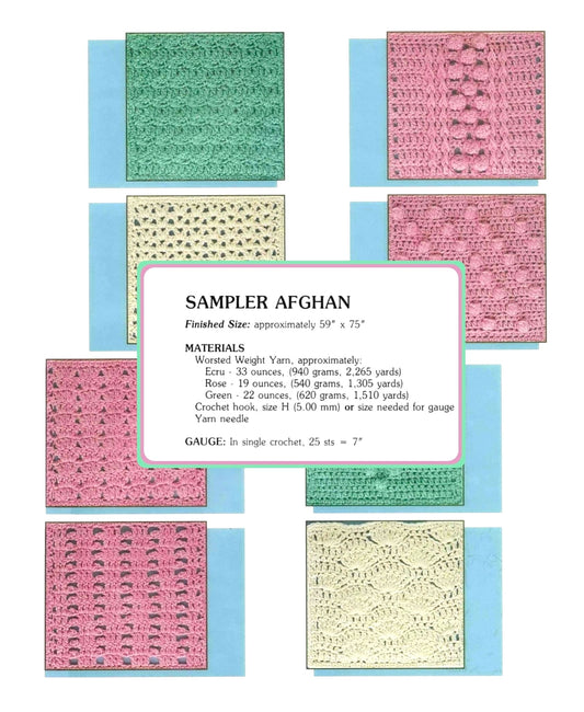 Vintage Crochet Pattern 63 Squares Heirloom Sampler Afghan Blocks Medley Blanket PDF Instant Digital Download Quick Easy Stitch 10 Ply