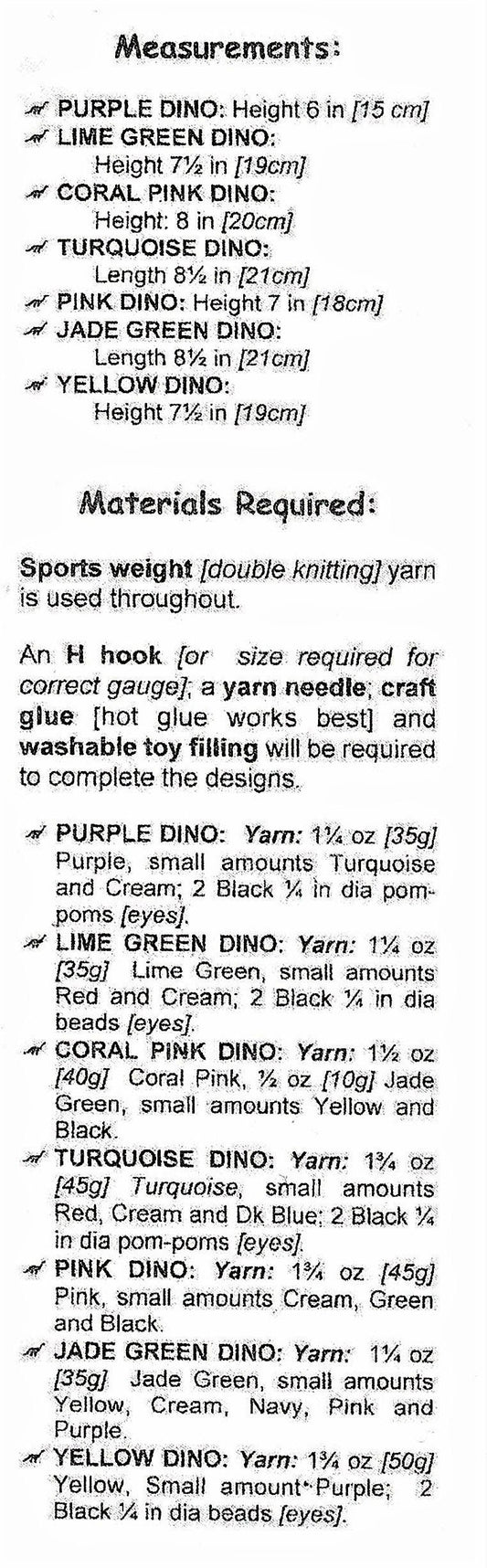 Vintage Crochet Pattern 6-8" Colorful Dinosaurs Amigurumi Soft Toys PDF Instant Digital Download Plush Winged Dino Wings 6 Designs DK 5 Ply