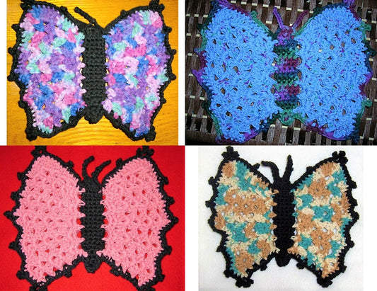 Vintage Crochet Pattern 8" Butterfly Potholders PDF Instant Digital Download Quick Easy Butterflies Pot Holders 10 Ply Variegated