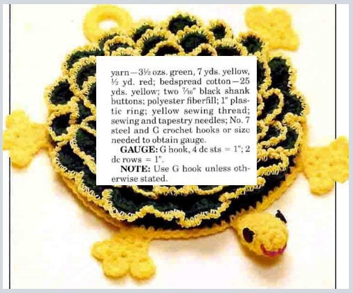 Vintage Crochet Pattern 8" Fun Lacy Flower Turtle Potholder PDF Instant Digital Download Crocheted Tortoise Pot Holder 10 Ply
