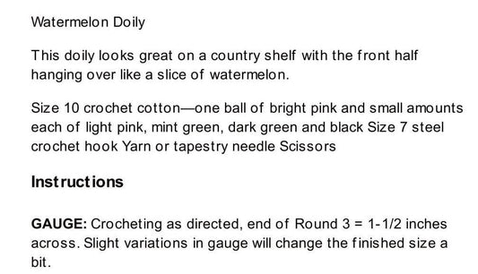 Vintage Crochet Pattern 8.5" Round Watermelon Doily Table Mat PDF Instant Digital Download Country Fruit Centerpiece Cotton Thread