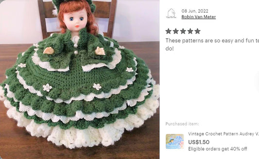 Vintage Crochet Pattern Audrey Victorian Bed Doll Music Box or Pillow Doll Dress Hat Outfit 13 Inch Dolls PDF Instant Digital Download