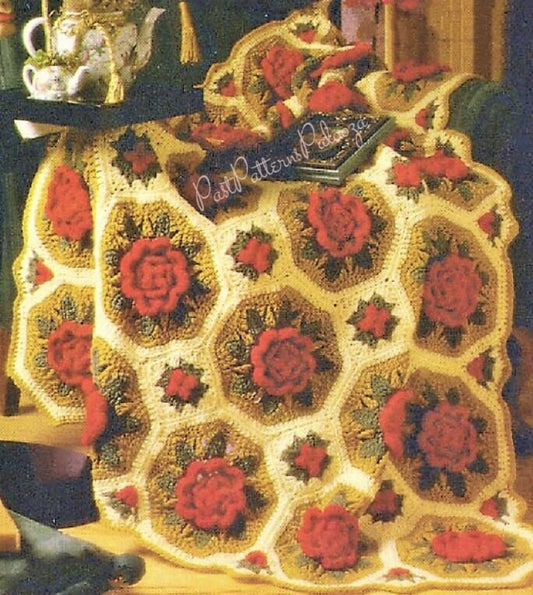 Vintage Crochet Pattern Aran Hearts of Love Afghan PDF Instant Digital Download Cluster Stitch Throw Blanket 10 Ply
