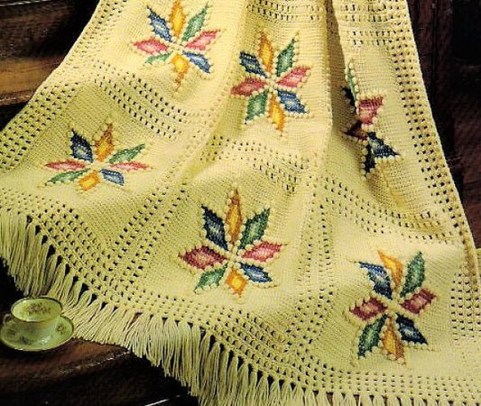 Vintage Crochet Pattern Antique Patchwork Stars Afghan Quilt Block Design PDF Instant Digital Download Puff & Tunisian Stitch Blanket 10 Ply