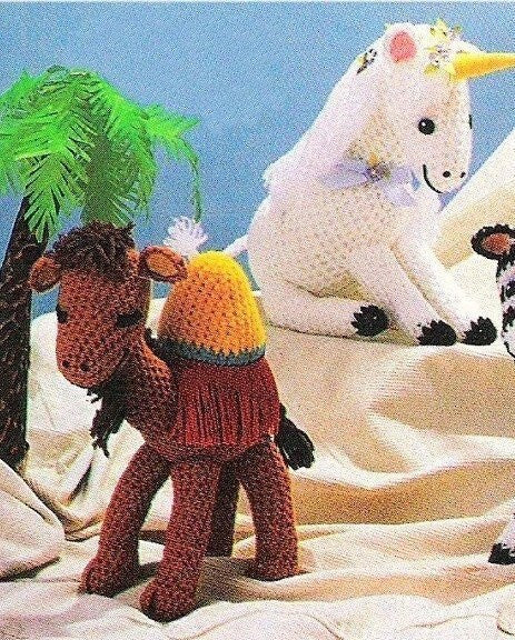 Vintage Crochet Pattern Animal Amigurumi Soft Toy Dolls PDF Instant Digital Download Plush Stuffed Camel Unicorn Zebra Giraffe 10 Ply
