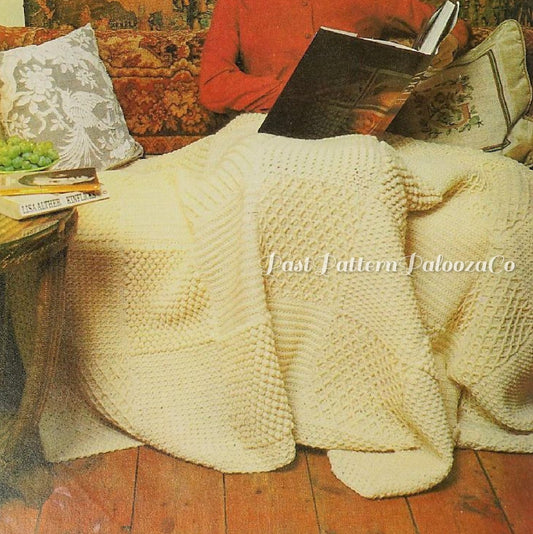 Vintage Crochet Pattern Aran Style Afghan Large Sampler Squares PDF Instant Digital Download 10 Ply