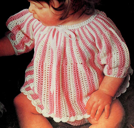 Vintage Crochet Pattern Baby Girl Candy Strip Maxi Angel Top with Panties PDF Instant Digital Download 6-18 Months Pearl Cotton Thread