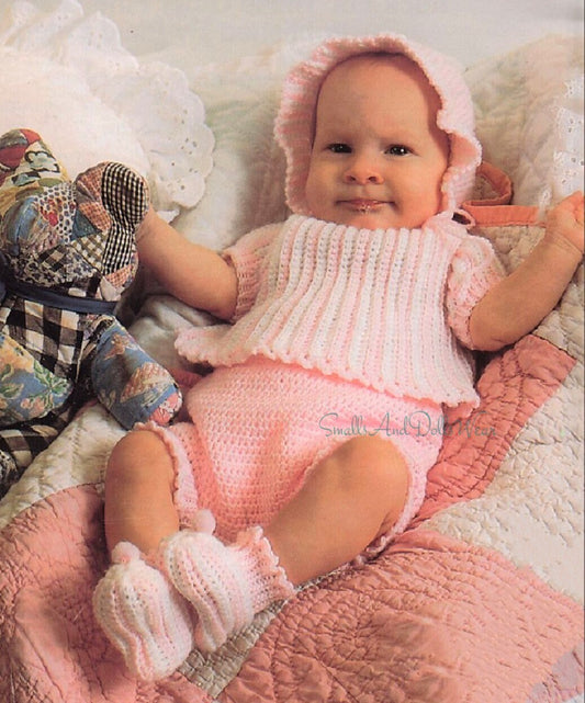 Vintage Crochet Pattern Baby Girl 5 Piece Sun Suit Set PDF Instant Digital Download Bonnet Top Panties Booties 0-6 months 5 Ply