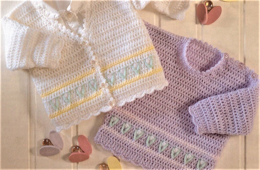 Vintage Crochet Pattern Baby Girl Child Cardigan and Pullover Sweaters Tulips Floral Border PDF Instant Digital Download 0-6 Yrs DK 8 Ply