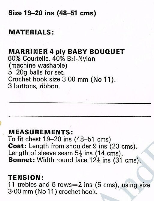 Vintage Crochet Pattern Baby Girl Treble Stitch Matinee Coat Bonnet Set PDF Instant Digital Download 19-20" Chest 4 Ply