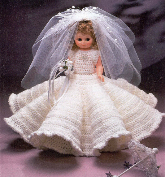 Vintage Crochet Pattern Beautiful Bride Bed Doll Gown Outfit for 13 Inch Doll PDF Instant Digital Download Wedding Bridal Outfit 10 Ply