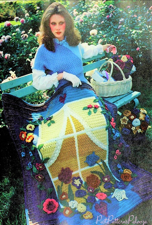 Vintage Crochet Pattern Beautiful Flower Window Box Afghan PDF Instant Digital Download Flower Box by Windowsill Design 10 Ply