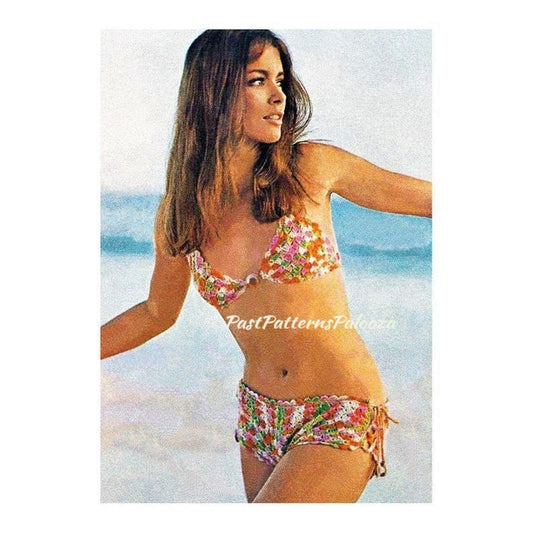 Vintage Crochet Pattern Beach Goddess Set Bikini Maxi Dress Cover Up Headpiece PDF Instant Digital Download 70s Boho Lace Mesh Shell Stitch