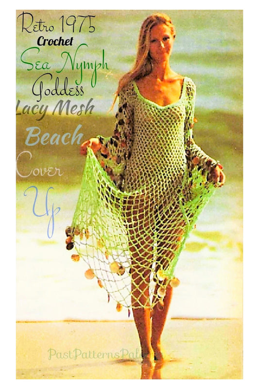 Vintage Crochet Pattern Beach Cover Up Tunic Maxi Dress PDF Instant Digital Download 70s Boho Bohemian Lace Mesh Sea Goddess Seashells