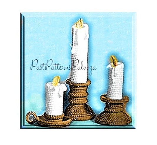 Vintage Crochet Pattern Brass Candlestick Candles Candleholders Three Sizes PDF Instant Digital Download Wizard Candle Amigurumi 10 Ply