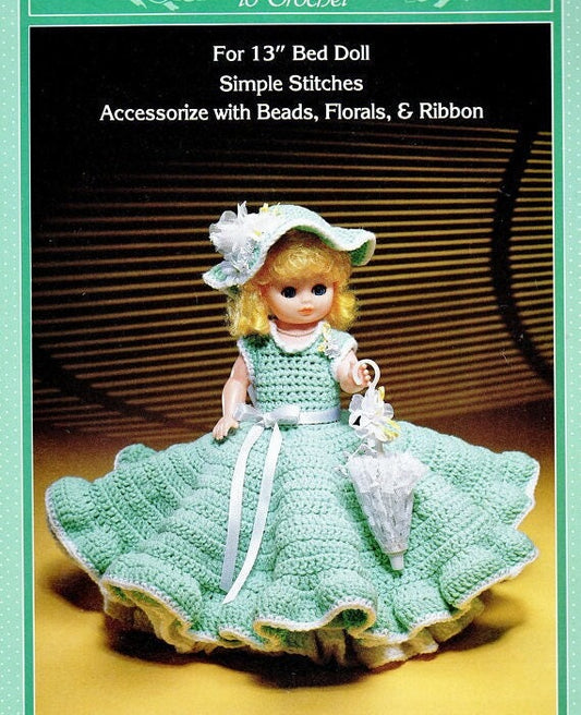 Vintage Crochet Pattern Bridesmaid Gown Dress Hat Outfit for 13 Inch Dolls PDF Instant Digital Download 10 Ply Bed Doll
