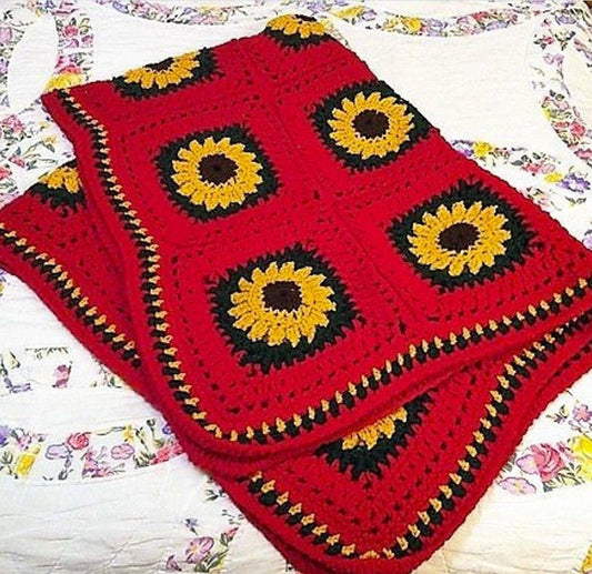 Vintage Crochet Pattern Bright Sunflowers Motif Granny Squares Afghan PDF Instant Digital Download Sun Flower Blanket 44x54 10 Ply